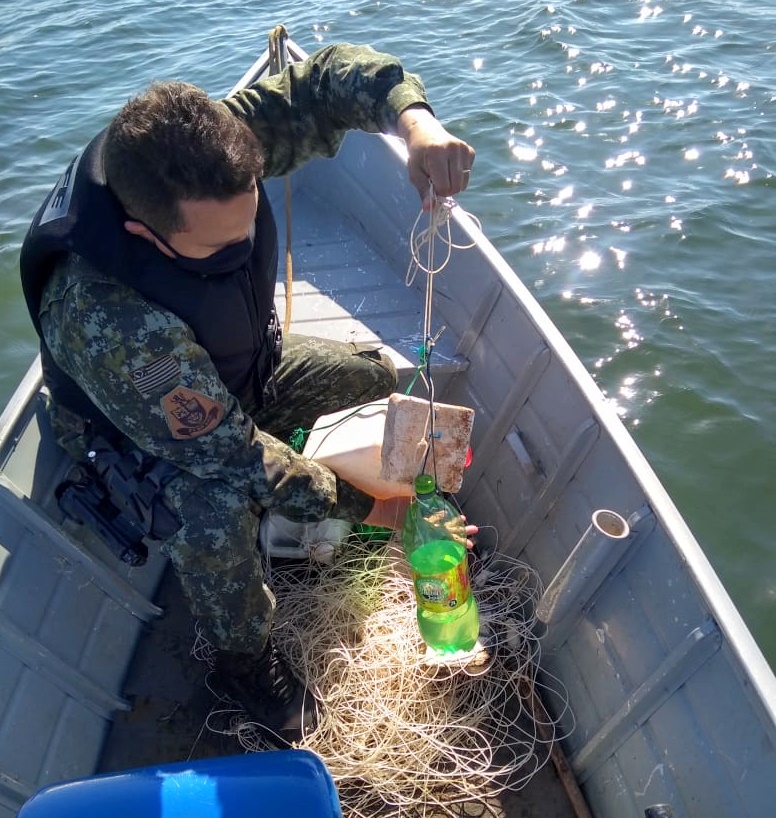 Depois, conseguiram deter um pescador que, usando um barco, estava retirando da represa três redes.
