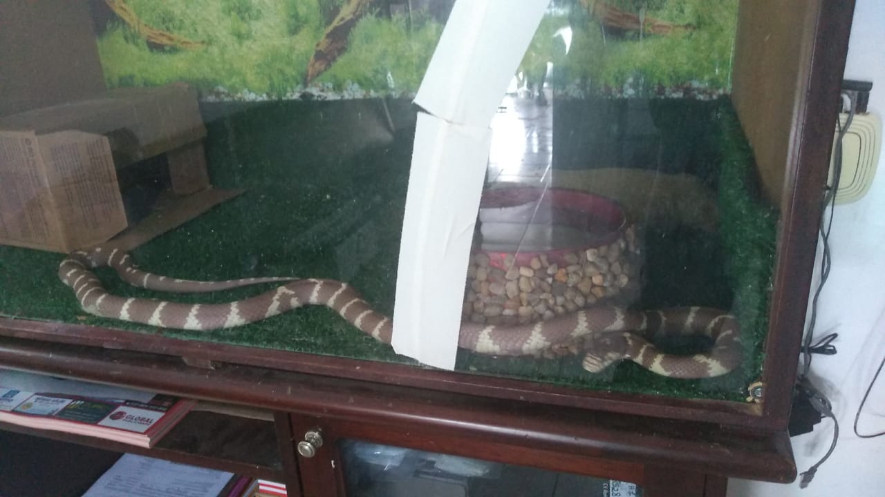 A Polícia Militar Ambiental apreendeu três cobras exóticas mantidas em cativeiro em residência de Garça nesta terça-feira (14). As apreensões das cobras da espécie Corn Snake e Califórnia King Snake foram realizadas no Jardim Paineiras.