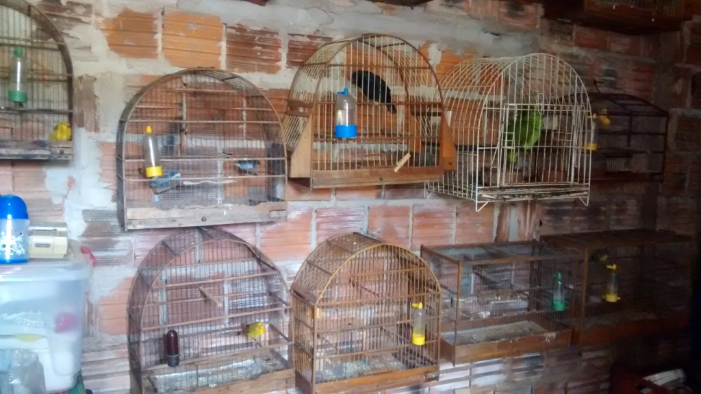 Policiais militares do 1º Pelotão Operacional com sede em Marília flagraram um criador que mantinha em cativeiro 11 pássaros das espécies Pássaro Preto, Papagaio-