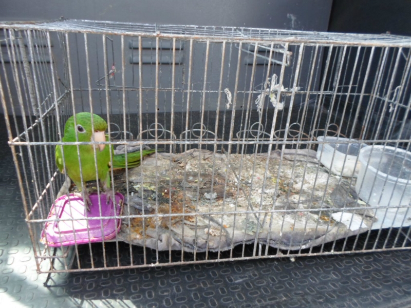 Através de denúncia anônima, os PM's chegaram até uma casa localizada no bairro Castelo Branco. Lá, um periquitão maracanã foi encontrado em uma gaiola, sem autorização do órgão ambiental competente.