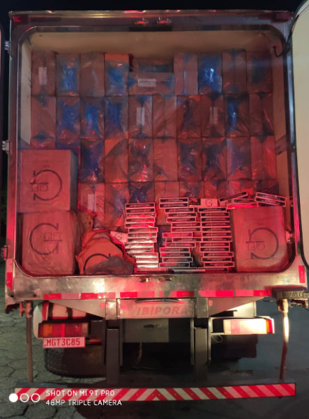O nervosismo denunciou o motorista e ele acabou confessando que estava transportando cigarros de origem paraguaia. Além disso, a polícia constatou que a placa do veículo não era do mesmo caminhão.