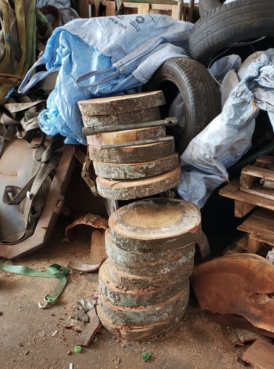 Duas pessoas que seriam responsáveis por parte da madeira e mais duas que teriam cortado uma árvore da espécie Jatobá foram advertidas. (G1)