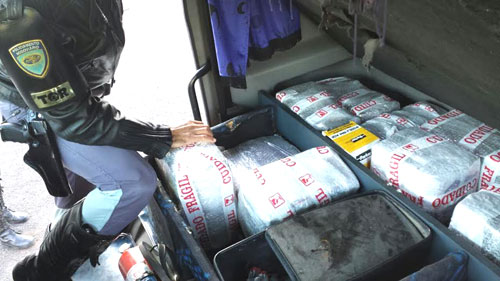 foram cerca de 200 tabletes, totalizando cerca de 150 kg de maconha. Nos últimos dias, a PRE já tinha feito outras apreensões semelhantes, como em vários pneus instalados numa carreta, em Tupã, e quase 10 toneladas em Pirajuí (86 quilômetros de Marília).