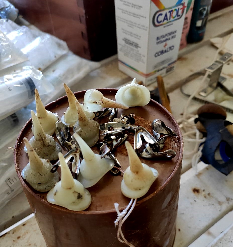 No local, foram apreendidos diversos objetos utilizados na rinha de galos, como medicamentos, gaiolas, esporas de plástico, biqueiras, cadernos com anotações da rinha, fichas enumeradas utilizadas para marcar sequência dos combates, entre outros materiais.