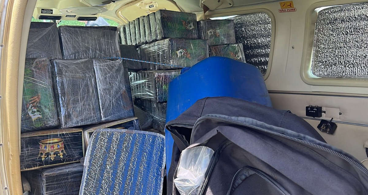 No interior do avião foram apreendidos 528,5 quilos de pasta base e cloridrato de cocaína. Os entorpecentes e a aeronave foram levados para a Delegacia da Polícia Federal em Marília.