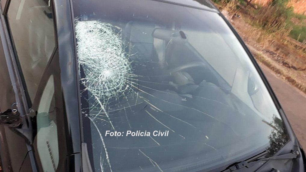 Para-brisa danificado: possivelmente local onde o ciclista foi atingido.