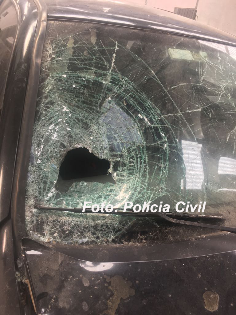 Dano no parabrisa que pode ter sido causado com o impacto do capacete de Bianca