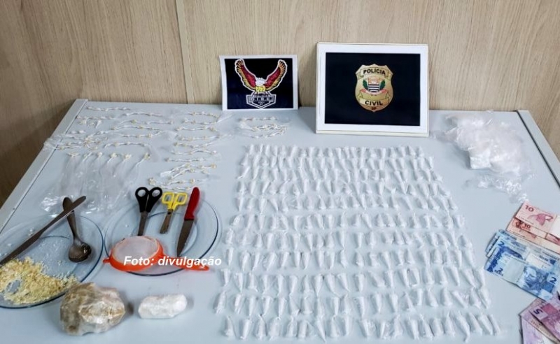 Após uma intensa investigação sobre o tráfico de drogas na cidade, os policiais civis conseguiram mandado de buscas e, ao invadir a residência, surpreendeu os três jovens preparando as porções para a venda.