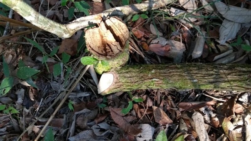 Policiais Militares do Batalhão de Policiamento Ambiental de Ourinhos constataram o corte ilegal de diversas árvores em São Pedro do Turvo (70 quilômetros de Marília).
