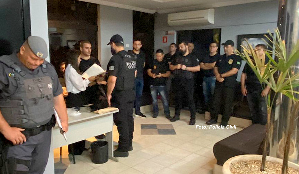 Hoje, estão sendo cumpridos 19 mandados de busca e apreensão e 10 mandados de prisão temporária, com apoio de duas equipes do BAEP- Canil da polícia militar.