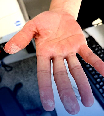 Após a ingestão, o homem precisou ser levado para a Unidade de Pronto Atendimento (UPA) da cidade, pois apresentava sintomas de intoxicação, como vômito com presença de sangue e forte queimação na garganta. Durante o atendimento, uma enfermeira que manuseou o recipiente também sofreu queimaduras nas mãos (foto).