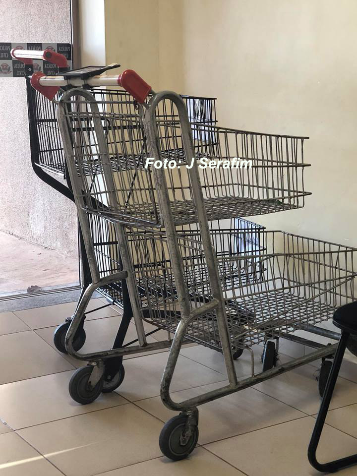 Os dois carrinhos estavam lotados de mercadorias.