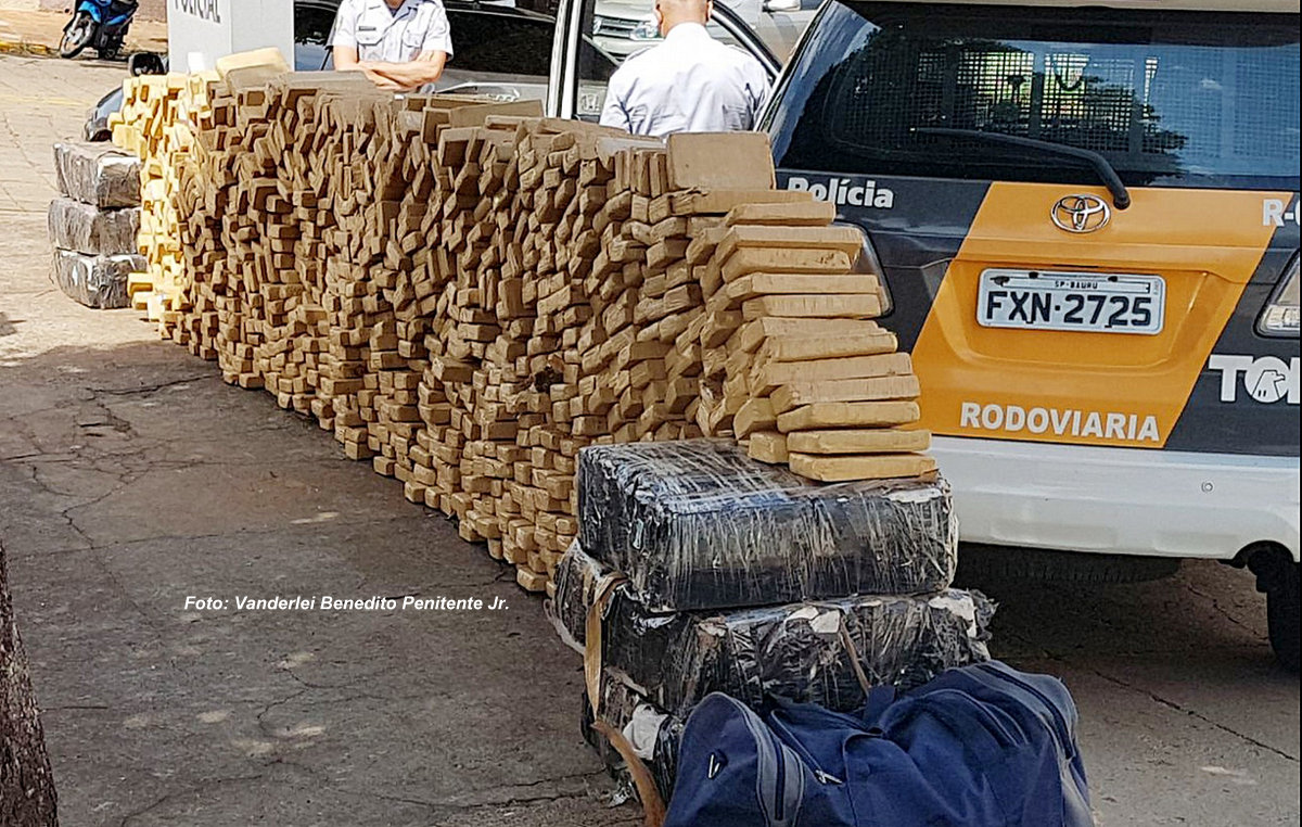 a procedência da caminhonete, com placas de Marília, utilizada para o transporte do entorpecente. Segundo estimativa, a apreensão deve ultrapassar uma tonelada. Três pessoas foram presas em flagrante.
