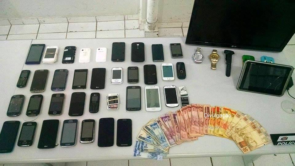 Uma operação montada pela 5ª Companhia da Polícia Militar resultou na apreensão de pelo menos 28 aparelhos celulares, tablets, uma televisão e um indivíduo preso.