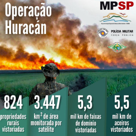 Realizada no período de 10 a 12, a operação foi desencadeada pela Polícia Militar Ambiental e Ministério Público de São Paulo em todo Estado e contou com o emprego de 520 policiais militares e Promotores de Justiça do GAEMA.