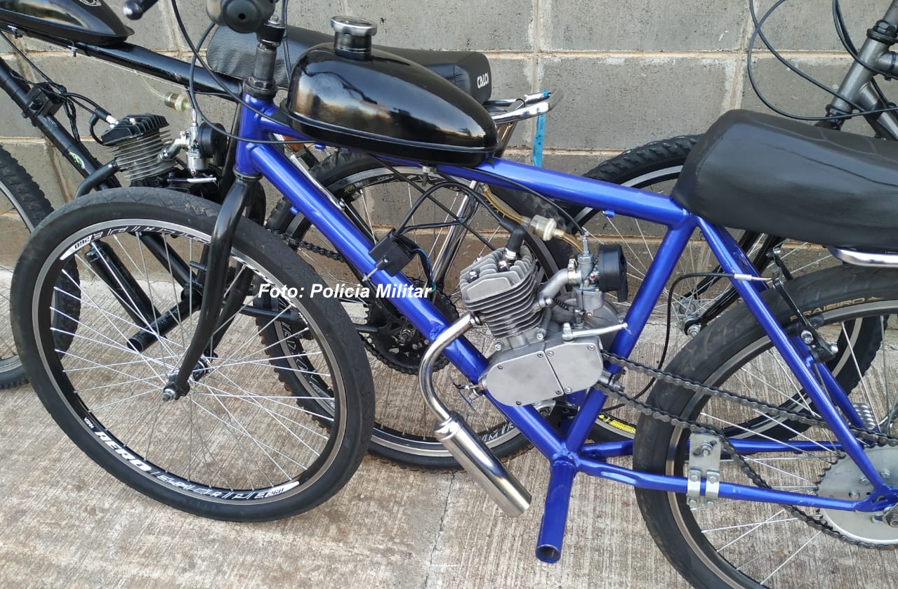 Os militares encaminharam ao plantão pelo menos cinco bicicletas motorizadas e uma motocicleta por falta de registro no órgão competente.
