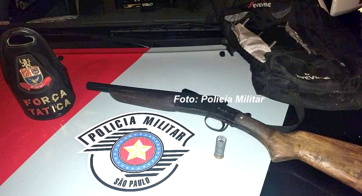 Espingarda calibre 12 foi apreendida pela Polícia Militar em Garça.