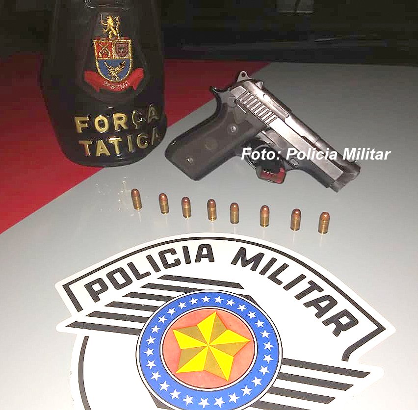 Foi dado ordem de parada e, na vistoria ao veículo, sob o banco do condutor, foi apreendida uma pistola calibre 380 com 8 cartuchos intactos. Diante dos fatos o indivíduo e veículo ao plantão policial para as demais providências de polícia judiciária