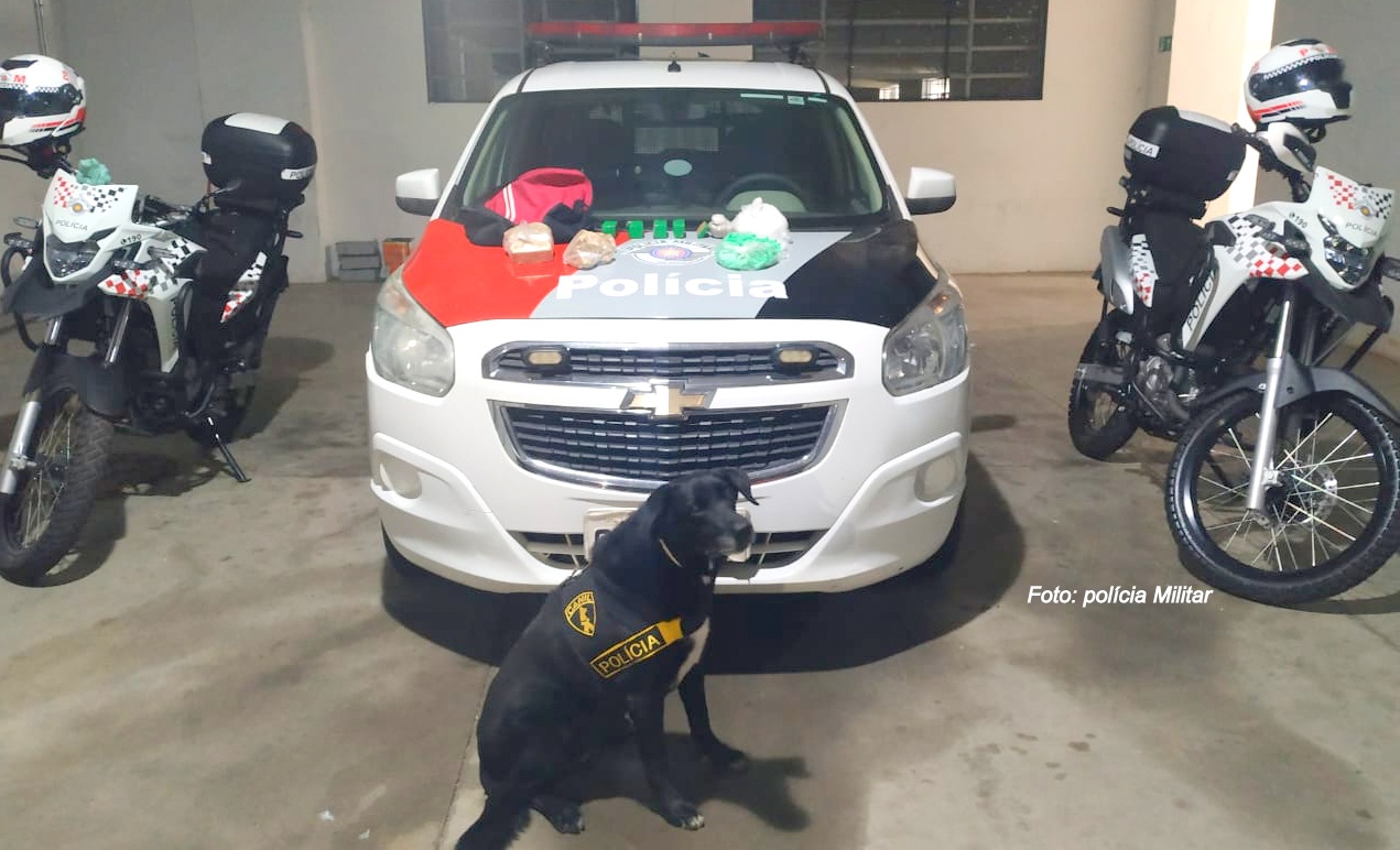 Mas, com apoio do cão de faro, a bolsa foi recuperada e, dentro dela, havia grande quantidade de maconha, crack e cocaína, totalizando mais de dois quilos de entorpecentes.