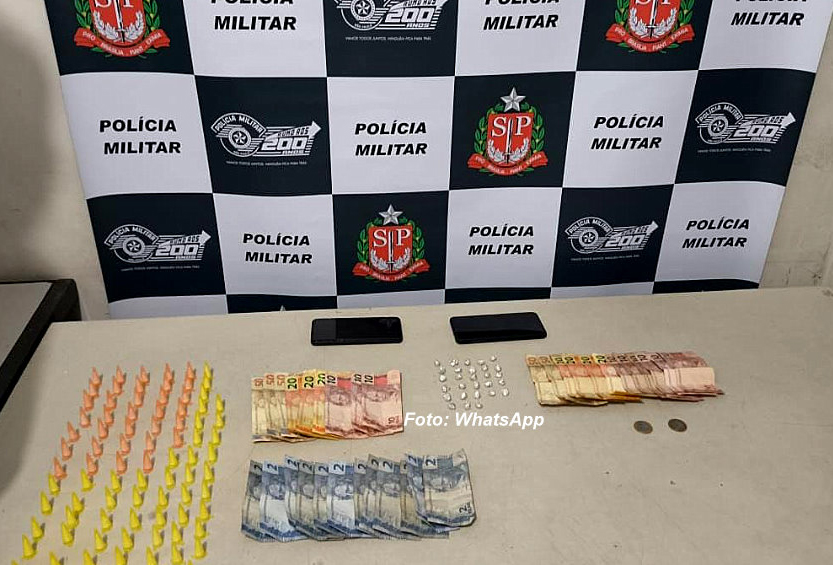 Ambos estavam com sacolas plásticas nas mãos contendo 98 pinos de cocaína, 28 de crack e mais R$ 526,00, dinheiro este que seria de outros entorpecentes que já tinham vendido.