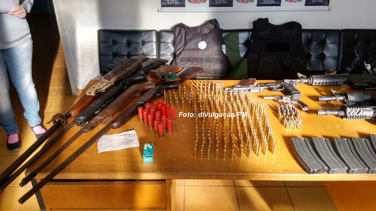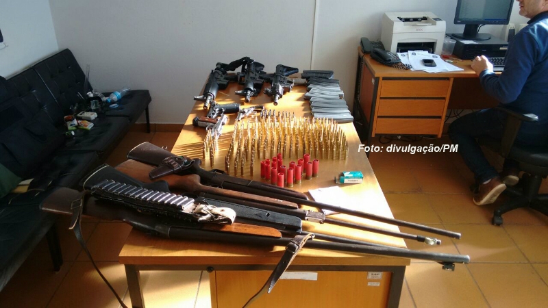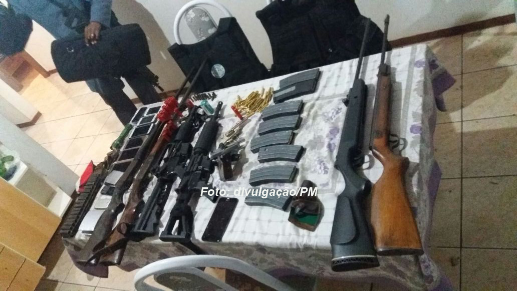 apreendidos pelo menos três fuzis, pistolas, coletes a prova de bala e munição. Um dos carros usados era blindado.
