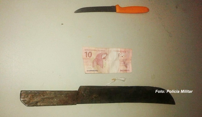 Ele acabou não reagindo a prisão, sendo encaminhado à Central de Polícia Judiciária, onde foi ouvido em termo circunstânciado por pode de entorpecentes e depois liberado, sendo apreendidas a faca e o facão.