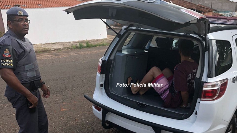 Foi montada uma operação e Matheus foi encontrado no quintal da residência. O rapaz ainda tentou correr, mas não conseguiu.