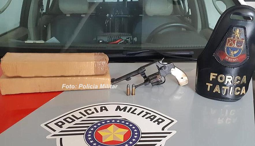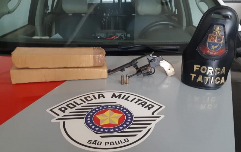 Na revista, os policiais localizaram dois tabletes de maconha e, com o motociclista, foi apreendido um revólver calibre 32, com duas munições intactas.