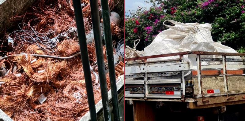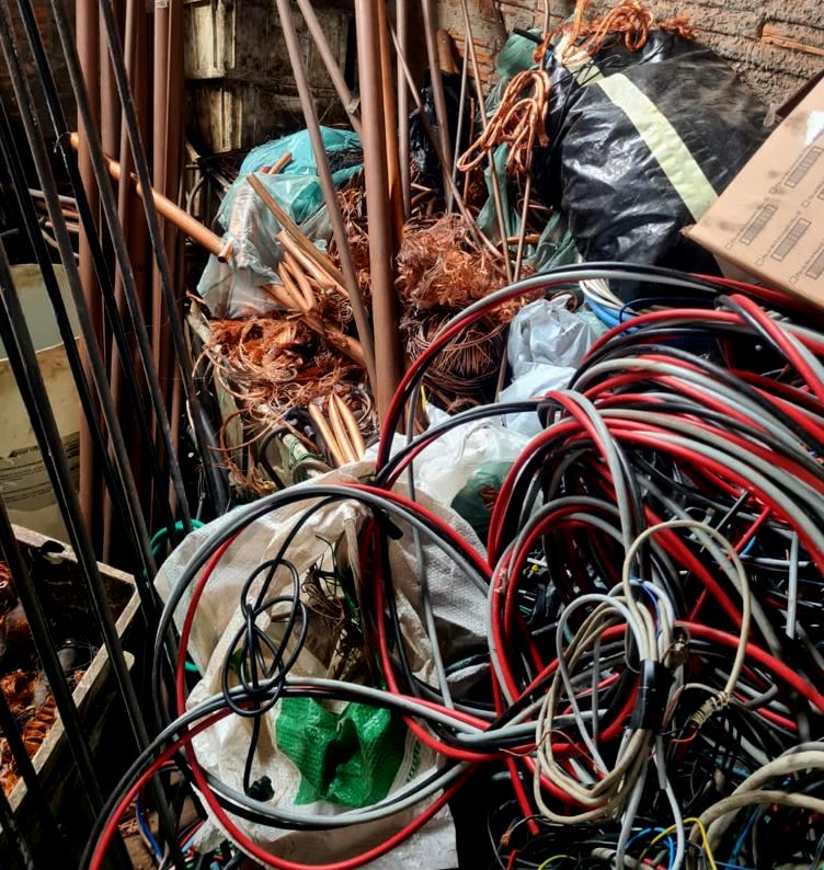 Em um deles, localizado na região do Jardim Santa Antonieta, foram localizadas cerca de três toneladas de material de procedência duvidosa e cabos de alumínio.