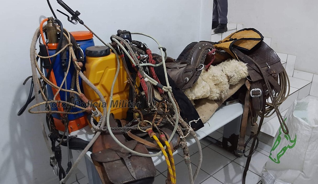 Na casa dele, foram localizados diversos produtos, como arreios, celas, alforges de couro, pelegos, cabrestos e equipamentos de montarias.