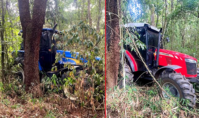 Dois tratores que haviam sido furtados em uma propriedade rural na divisa entre os municípios de Quatá e João Ramalho foram localizados neste domingo em uma mata próxima de um trevo da vicinal que liga Quintana a Borá. Os veículos estavam escondidos em uma mata e a polícia agora tenta identificar os criminosos.