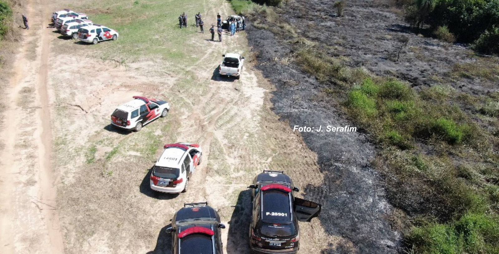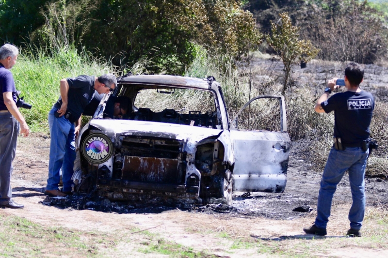 Local onde o corpo e o carro foram encontrados carbonizados.