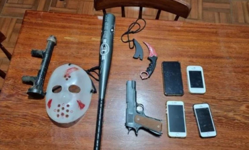 Também apreendeu taco de beisebol, arma de fogo, faca, quatro telefones e uma máscara do personagem Jason, da série Sexta-Feira 13.