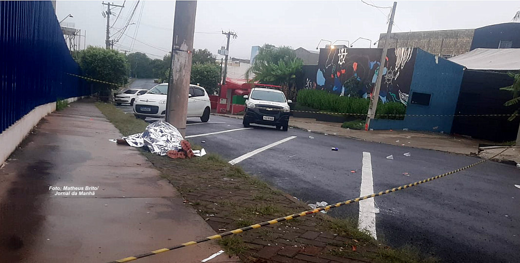 Corpo do rapaz ainda no local aguardando a chegada da perícia.