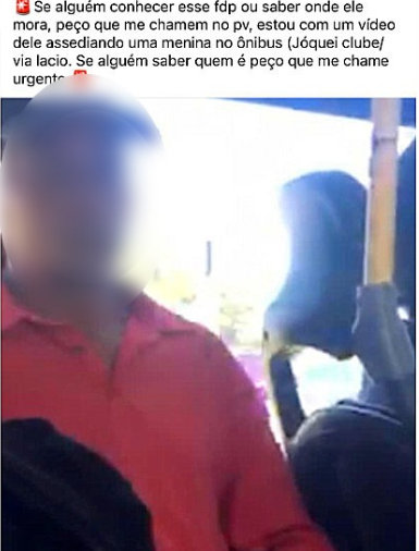O que ele possivelmente não percebeu é que tudo estava sendo gravado pela vítima, pelo celular. O vídeo circulou rapidamente pelas redes sociais e, pelos comentários, há pessoas tentando localizar o suspeito para fazer "justiça pelas próprias mãos".