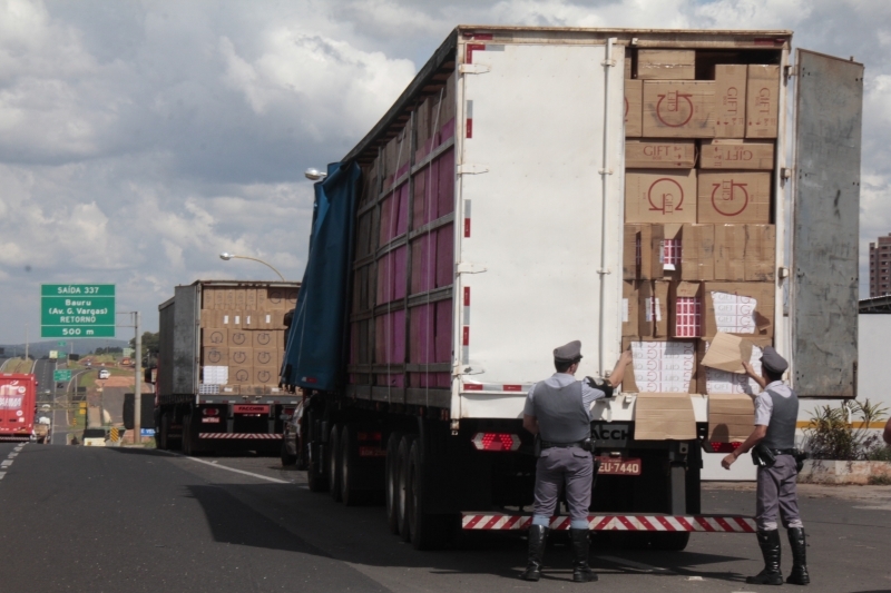 "Durante a abordagem, um outro caminhão semelhante passou ao lado, no mesmo sentido a Bauru. Foi então que os policiais acionaram a base de Bauru e nós abordamos o veículos aqui, contendo carga e quantidade semelhante de cigarros sem nota fiscal". Na apreensão feita em Bauru, o caminhão era conduzido por Wagner Antônio Lima, com mandados de prisões expedidos em São Paulo, Mato Grosso, Mato Grosso do Sul e Paraná. Ambos os motoristas e a carga foram levados à Polícia Federal de Bauru.