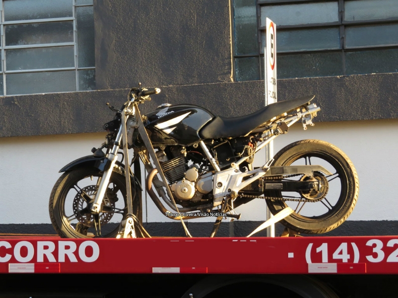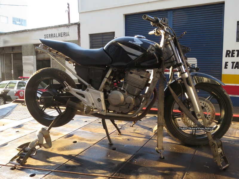 De acordo com informações do setor P5 (comunicação social) da PM, a motocicleta, uma Honda Twister de cor preta, foi encontrada durante patrulhamento de rotina, abandonada, inteira 'depenada', sem boa parte de suas peças e sistemas. O guincho foi solicitado, e o veículo entregue na Central de Polícia Judiciária, onde foi registrada a ocorrência. Será investigado através do número de chassi o proprietário da moto, que posteriormente será contatado para reaver o que sobrou de seu veículo.
