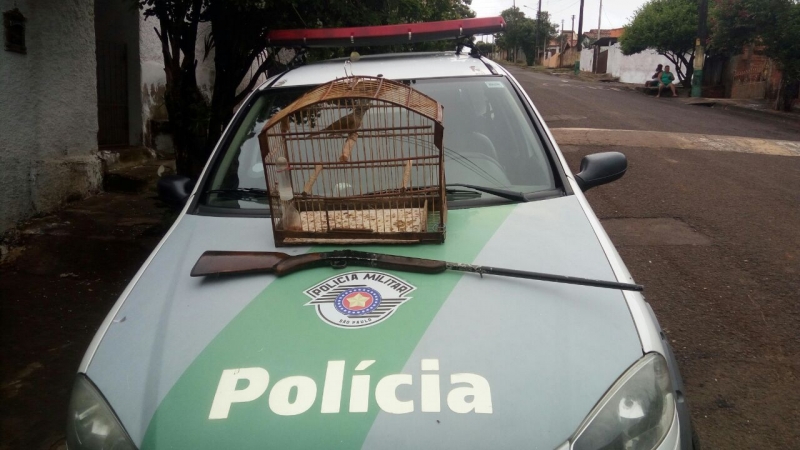 Policiais Militares do batalhão de policiamento ambiental de Marília apreenderam no município de Ourinhos uma espingarda e resgataram um pássaro que era mantido ilegalmente em cativeiro.