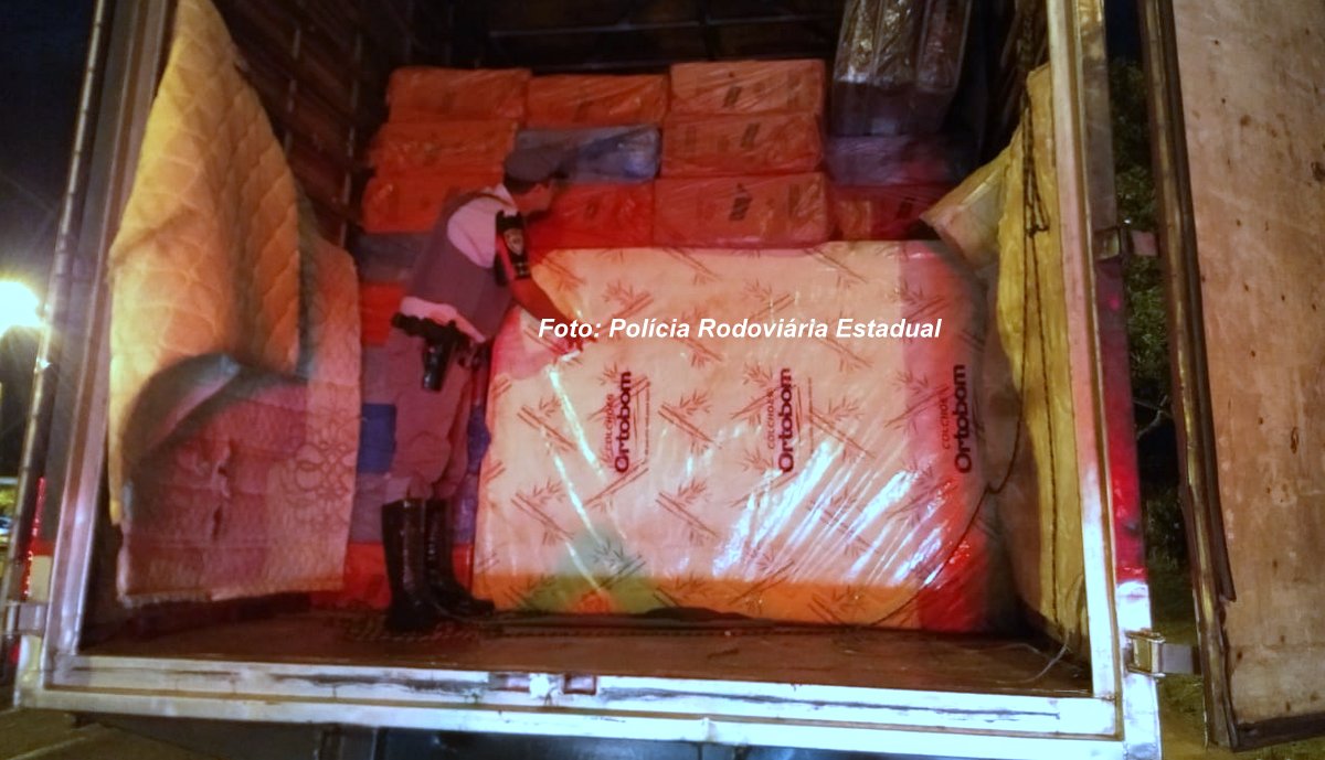 Caminhoneiro confessou que iria receber R$ 1, 5 mil para levar carga à capital paulista. Contrabando estava escondido no meio de colchões.