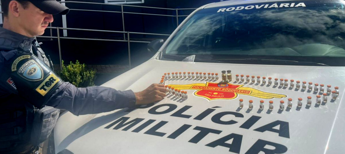 Durante abordagem a um veículo Toyota/Corolla, policiais do TOR (Tático Ostensivo Rodoviário) localizaram, dentro de uma caixa de isopor no porta-luvas, 56 ampolas de TG-15 (medicamento utilizado para emagrecimento) além de duas ampolas de Durateston Plus Gold, conhecido anabolizante.