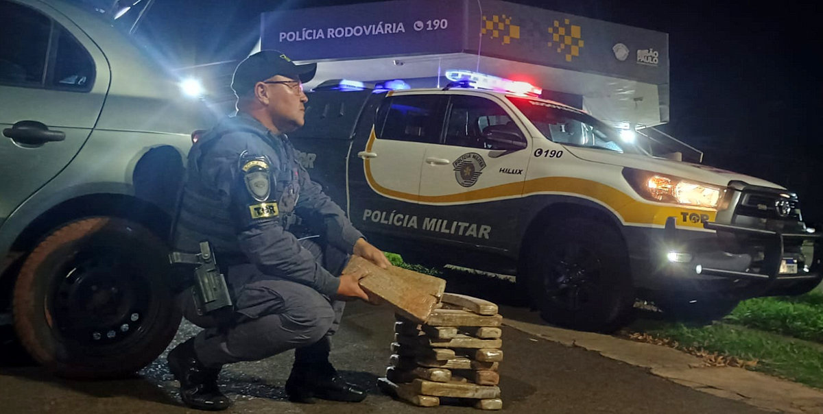 Outra equipe do TOR realizou apreensão de drogas na rodovia Raposo Tavares (SP-270), na altura de Palmital, na região de Assis. Durante fiscalização na praça de pedágio, os policiais abordaram um VW/Gol e, ao vistoriar o veículo, encontraram um saco plástico no assoalho do banco traseiro contendo 19 tabletes de maconha, que totalizaram 14,860 quilos.