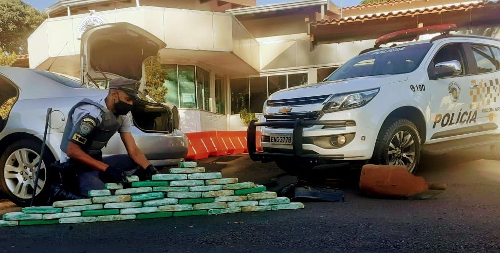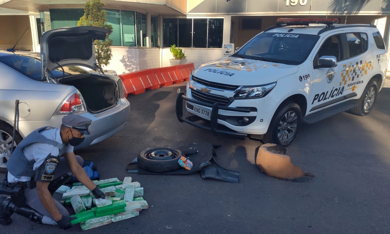 Um homem de 40 anos foi preso em flagrante pela Polícia Rodoviária Estadual acusado de transportar grande quantidade de maconha no interior de um carro, na rodovia do Contorno, em Marília. A droga estava escondida em fundos falsos e o condutor está sendo autuado em flagrante por tráfico na Central de Polícia Judiciária.