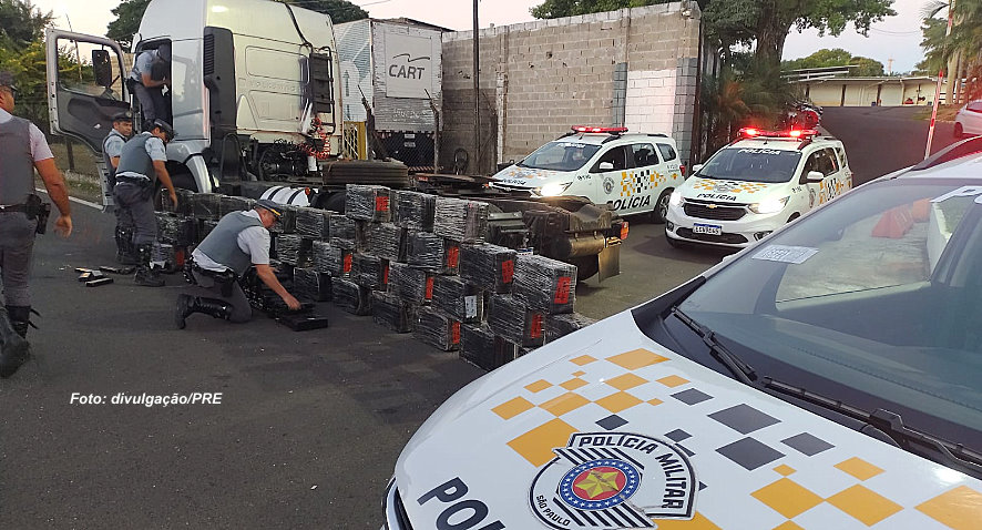 A Polícia Rodoviária Estadual apreendeu agora há pouco, na entrada de Marília, um grande carregamento de maconha. A droga estava sendo transportada na cabine de uma carreta. O motorista ainda tentou fugir, abandonando o veículo, mas acabou preso.