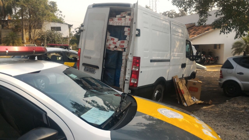 A Polícia Rodoviária Estadual apreendeu há pouco, em Marília, uma van carregada com cigarros contrabandeados do Paraguai. O motorista foi preso. O caso está sendo apresentado na Polícia Federal.