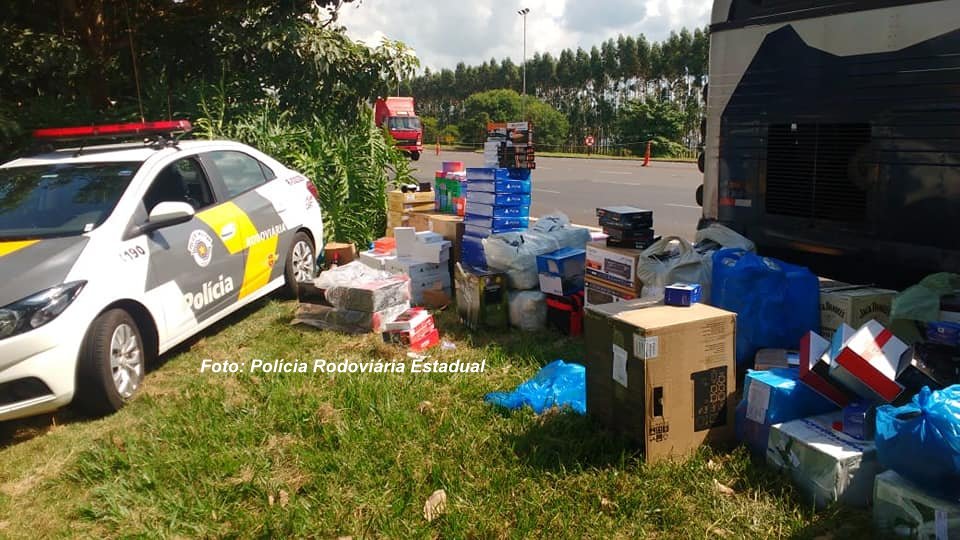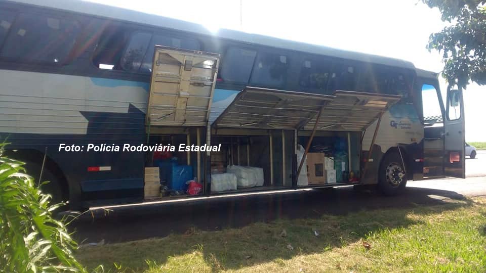Um ônibus com grande quantidade de produtos contrabandeados do Paraguai foi apreendido no final da manhã deste sábado (27) pela Polícia Rodoviária Estadual. Flagrante está sendo realizado na delegacia da Polícia Federal, em Marília.