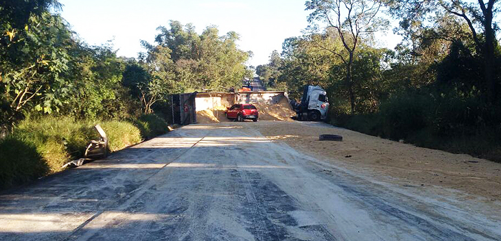 Outra ocorrência grave ocorrida nesta madrugada foi na rodovia Manílio Gobbi (SP-284) que liga Assis a Paraguaçu Paulista. Foi um acidente envolvendo duas carretas e um carro. Duas pessoas ficaram feridas e, para quem utiliza o trecho, uma notícia ainda pior: as pistas estão totalmente interditadas, já que uma das carretas tombou.