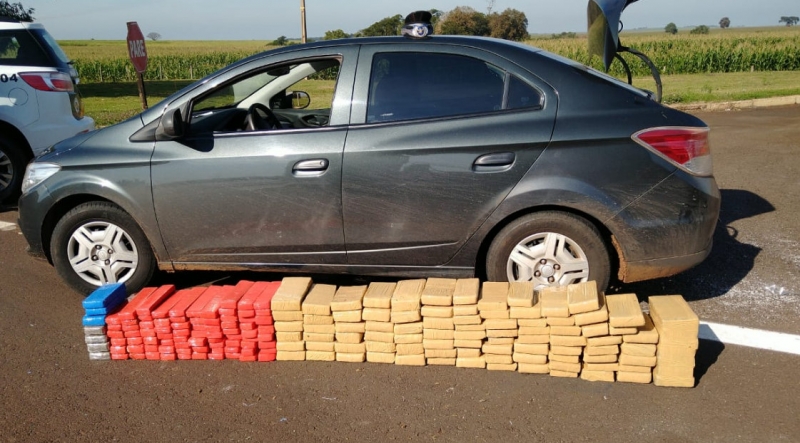 A droga, embalada em tabletes, foi encontrada no porta malas no veículo GM/Prisma, com placas do Mercosu, que foi abordado e vistoriado pelas equipes, após o motorista demonstrar nervosismo.