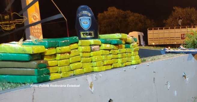 Dois homens foram presos em flagrante pela Polícia Rodoviária Estadual acusados de transportar mais de 60 quilos de maconha na rodovia SP-333, em Florínea, na região de Assis. A droga estava sendo transportada no fundo falso de um veículo.