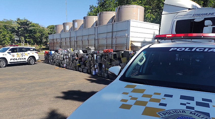 Segundo a corporação, a apreensão ocorreu durante uma abordagem a uma carreta com placas do Paraguai, na altura do quilômetro 426 da rodovia Raposo Tavares.