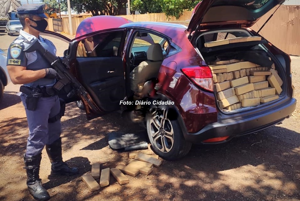 Polícia Rodoviária Estadual apreendeu quase meia tonelada de maconha que estava sendo transportada em carro em Santa Cruz do Rio Pardo, região de Ourinhos. Um rapaz de 22 anos foi preso em flagrante.